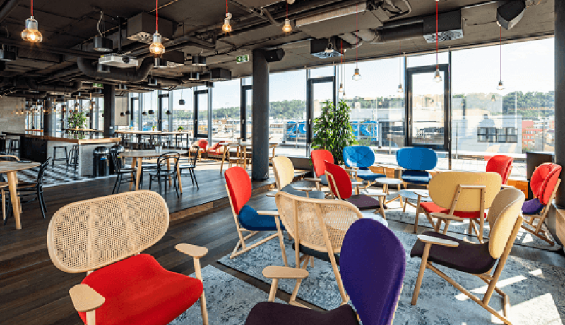 Administrativní komplex s nadstandardním zázemím. V showroomech GymBeam Fitness Hub, RE/MAX G8 Reality, NATUZZI ITALIA, PKS okna, Studio Decoland, Fuku wok & sushi.