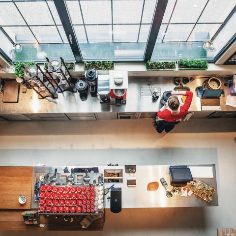 Výborná káva s sebou a výběr drobných zákusků na procházky Karlínem. To je EMA espresso bar.