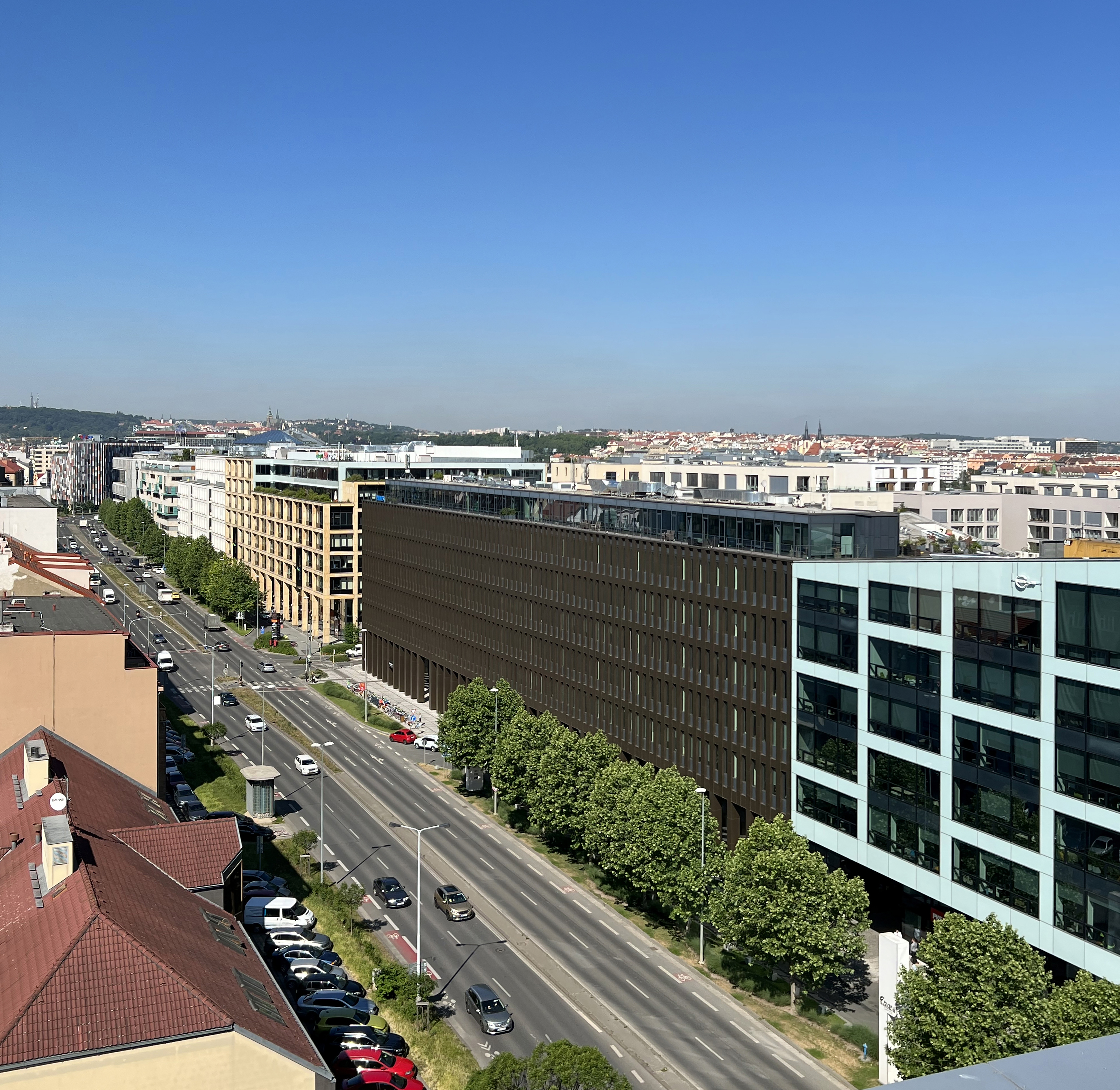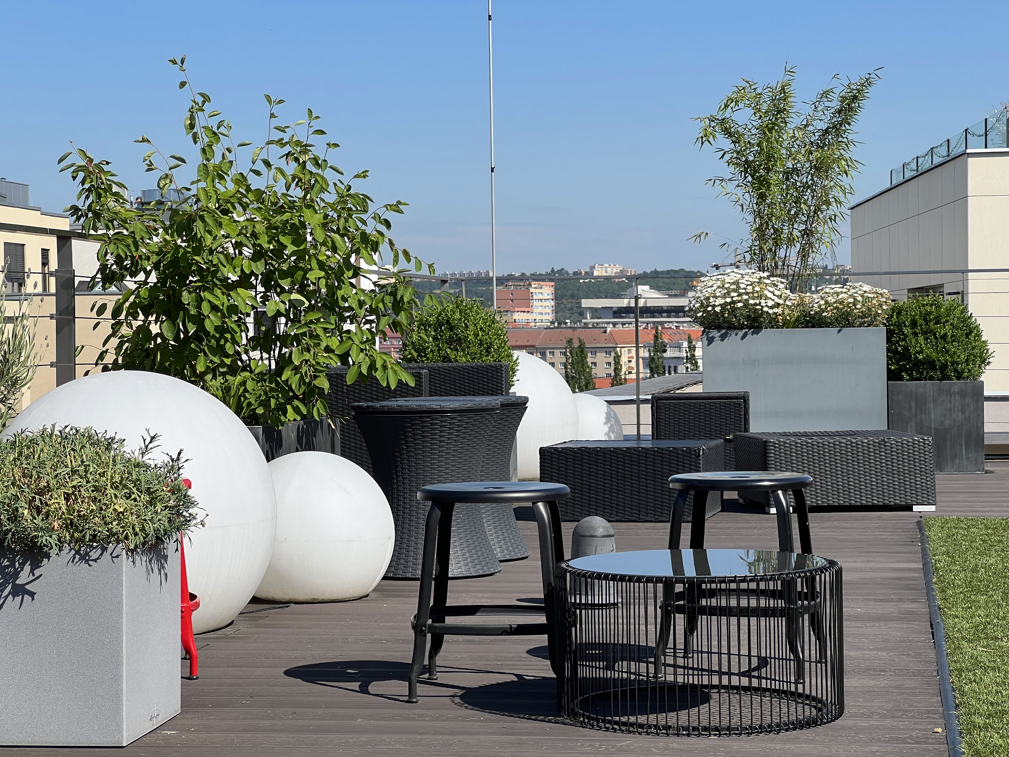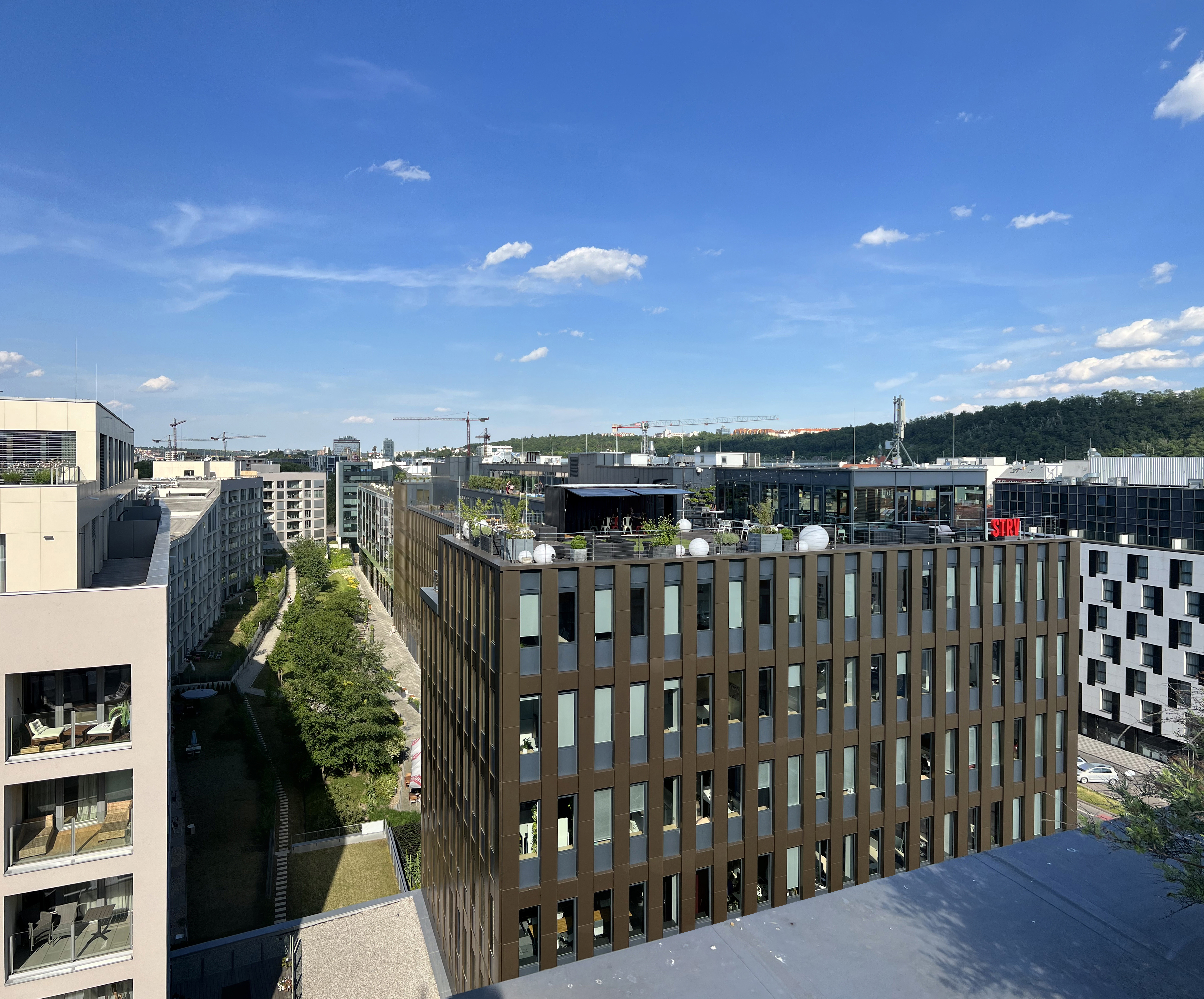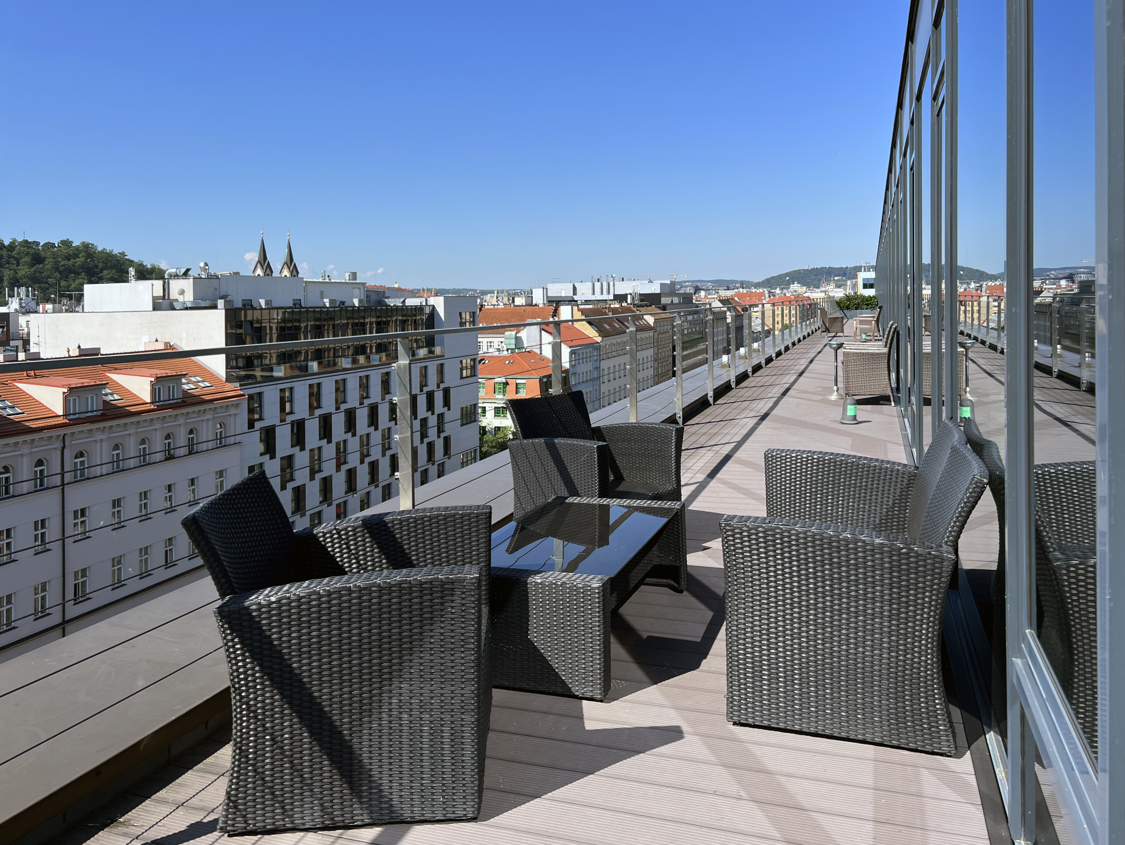 • V horních podlažích součástí pronajímaných prostor terasy s výhledy