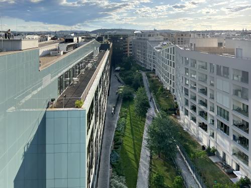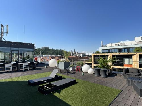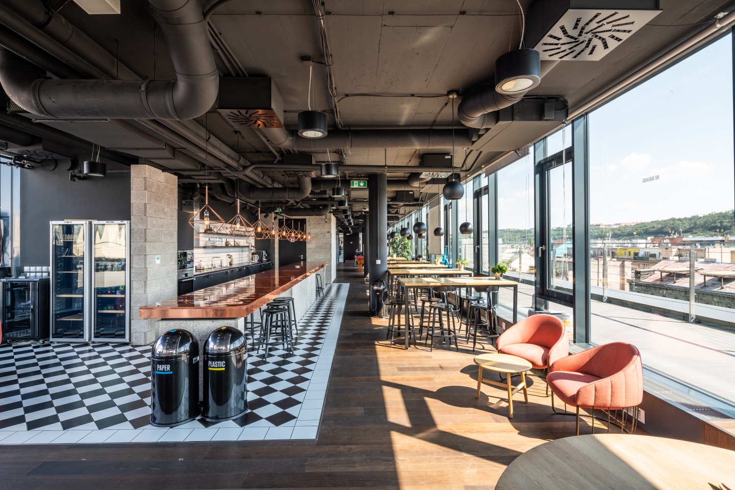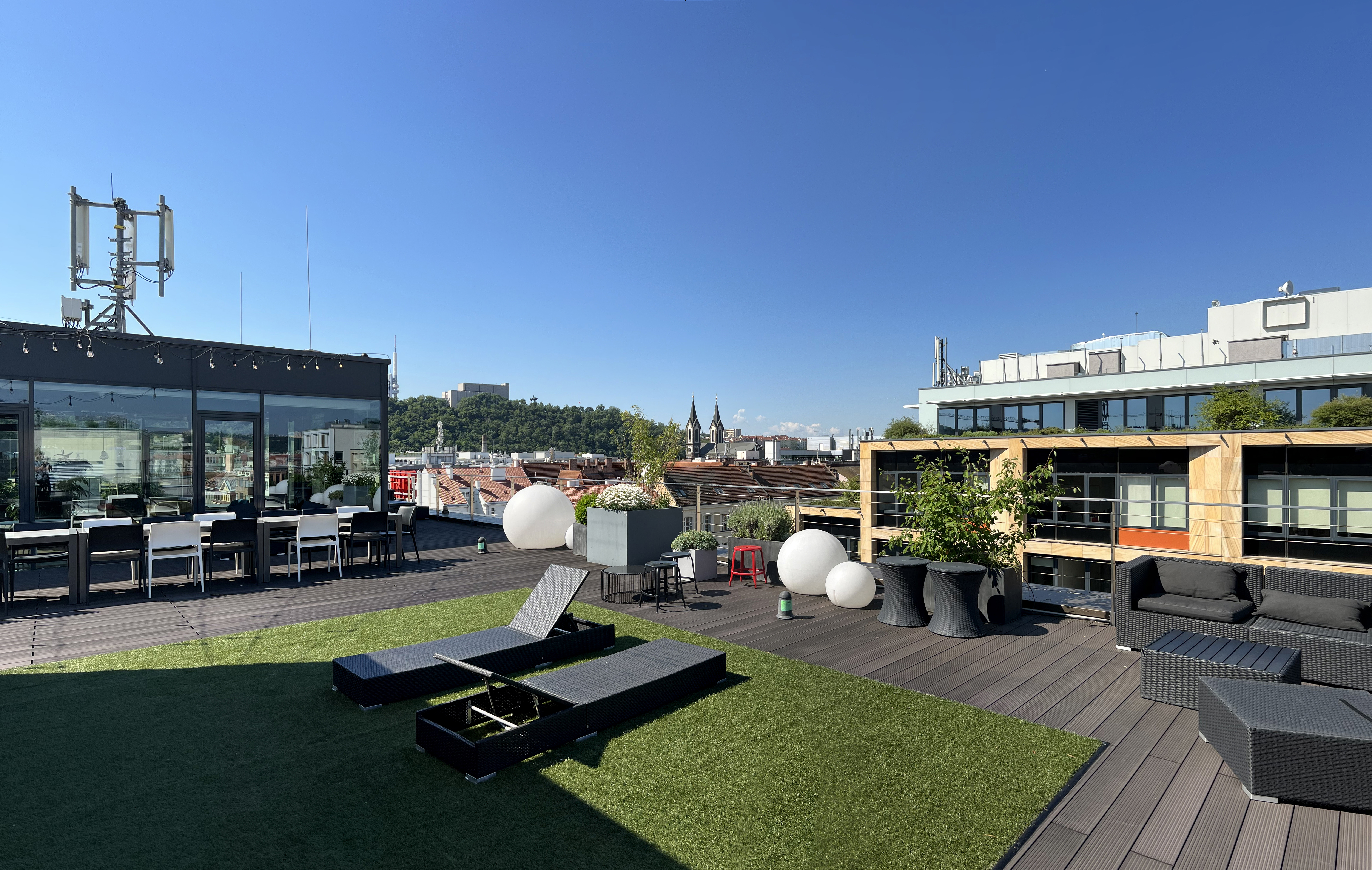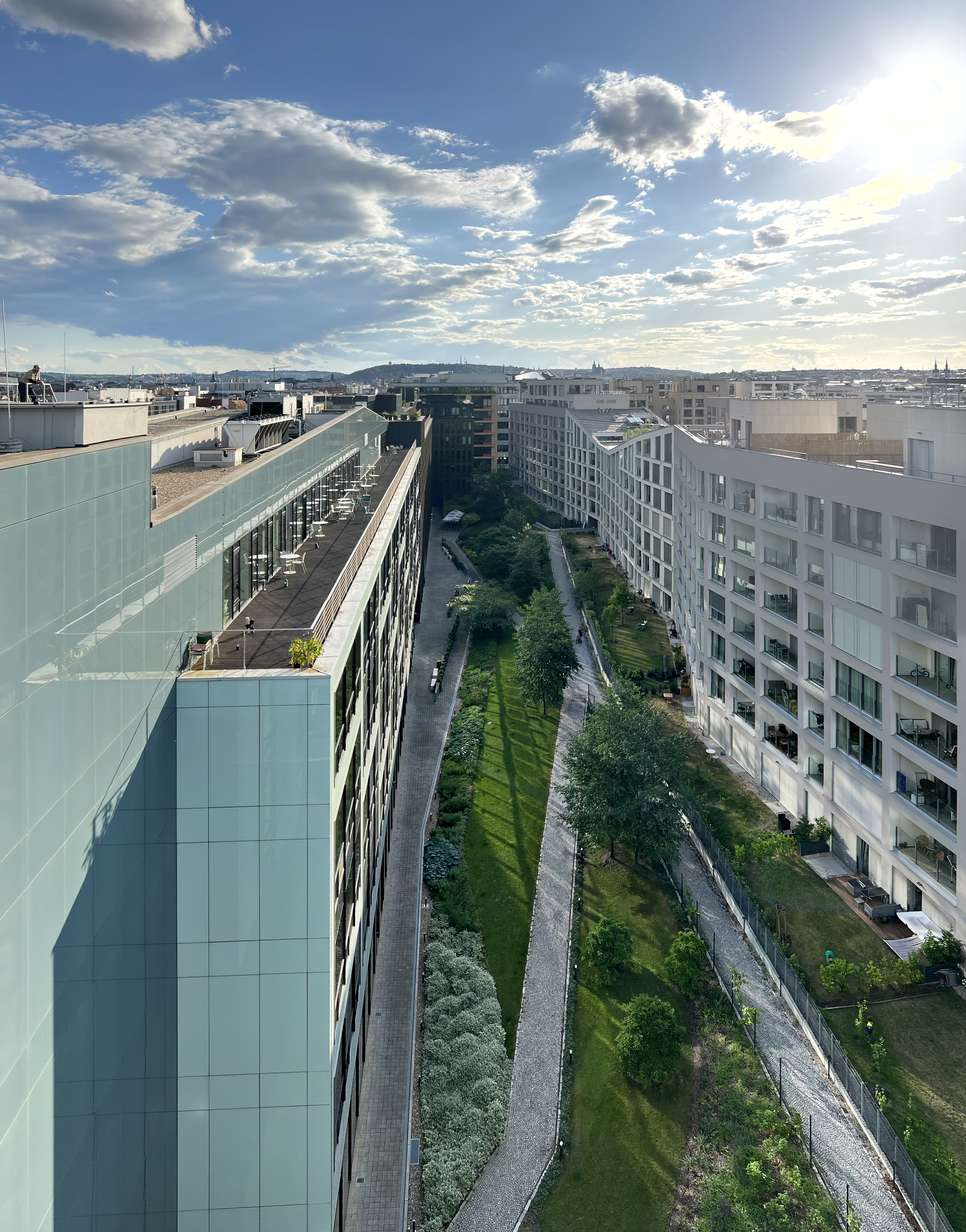 • V horních podlažích součástí pronajímaných prostor terasy s výhledy